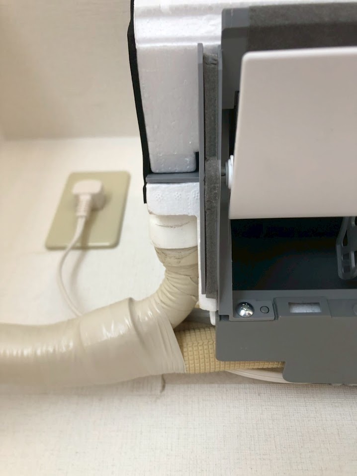排水ホースがうまく設置されていなかったため、メンテナンスも兼ねて直すことで正常に使用できるように修繕いたしました。
